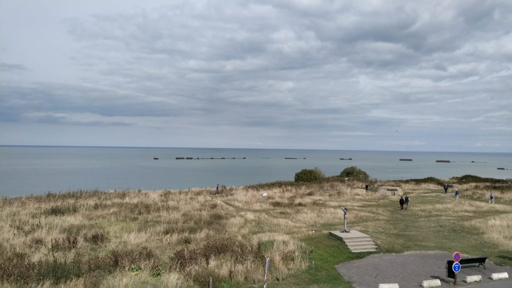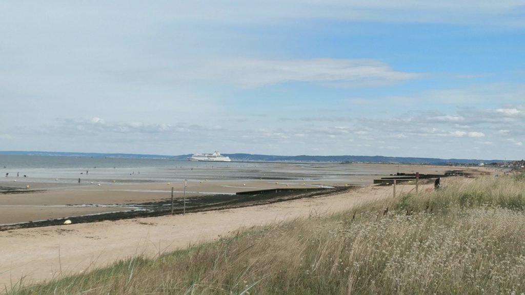 Et je retrouve La Manche, soleil, ciel bleu donc baignade puis casse-croûte, le top. Très roulant le long de la côte jusqu’au port de Ouistreham, 1er jour avec + 100 kms. Par contre bivouac un peu compliqué donc petit camping à côté de la plage, ce soir pas de popote on va goûter la pizza normande.