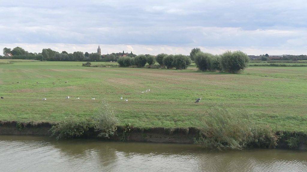 Ce matin quelques côtes pour démarrer puis le plat en zone rurale, il n’y a pas grand monde, je croise quelques personnes étonnées de voir un cycliste, un petit marché me permets de lancer un peu la discussion, les gens sont sympathiques mais pas tellement bavards … comme moi ! Je rentre en Belgique sans m’en apercevoir hormis les panneaux en flamand. Le vent de noroit est de retour avec la grisaille, le halage de l’Yser est un peu dur à longer avec l’air frais du large. Je visite Nieuwpoort qui baigne dans l’eau.