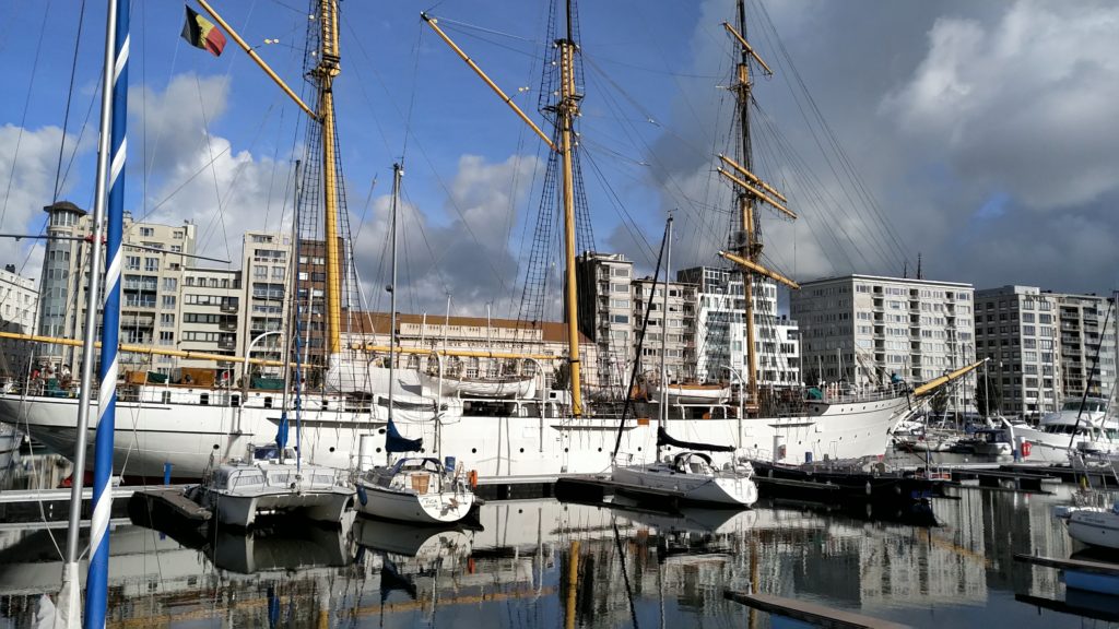 La traversée de la Belgique en longeant la côte se fait très vite, c’est très roulant mais un peu monotone car beaucoup de commerces sont fermés, assez bétonné c’est visiblement la station balnéaire belge, par contre avec le vent dans le dos, c’est assez cool. Il n’y a personne sur les plages … je devrais dire sur la plage qui fait des dizaines de kilomètres de long de Nieuwpoort à Knocke-le-Zoute. Des marchés et des foires se succèdent sur la promenade très large, on y trouve des œuvres d’art. Des grands ports de plaisance et surtout de commerce rompent la plage de sable blanc, il faut dire que la Belgique n’a pas beaucoup de côte maritime, tout y est donc concentré. Le passage aux Pays-Bas ne se remarque même pas … c’est le nombre de cyclistes qui fait la différence, il y en a partout, je me sens moins seul, j’ai le droit à un signe de la main à chaque fois ça fait plaisir. Mais tout ça c’était avant !!