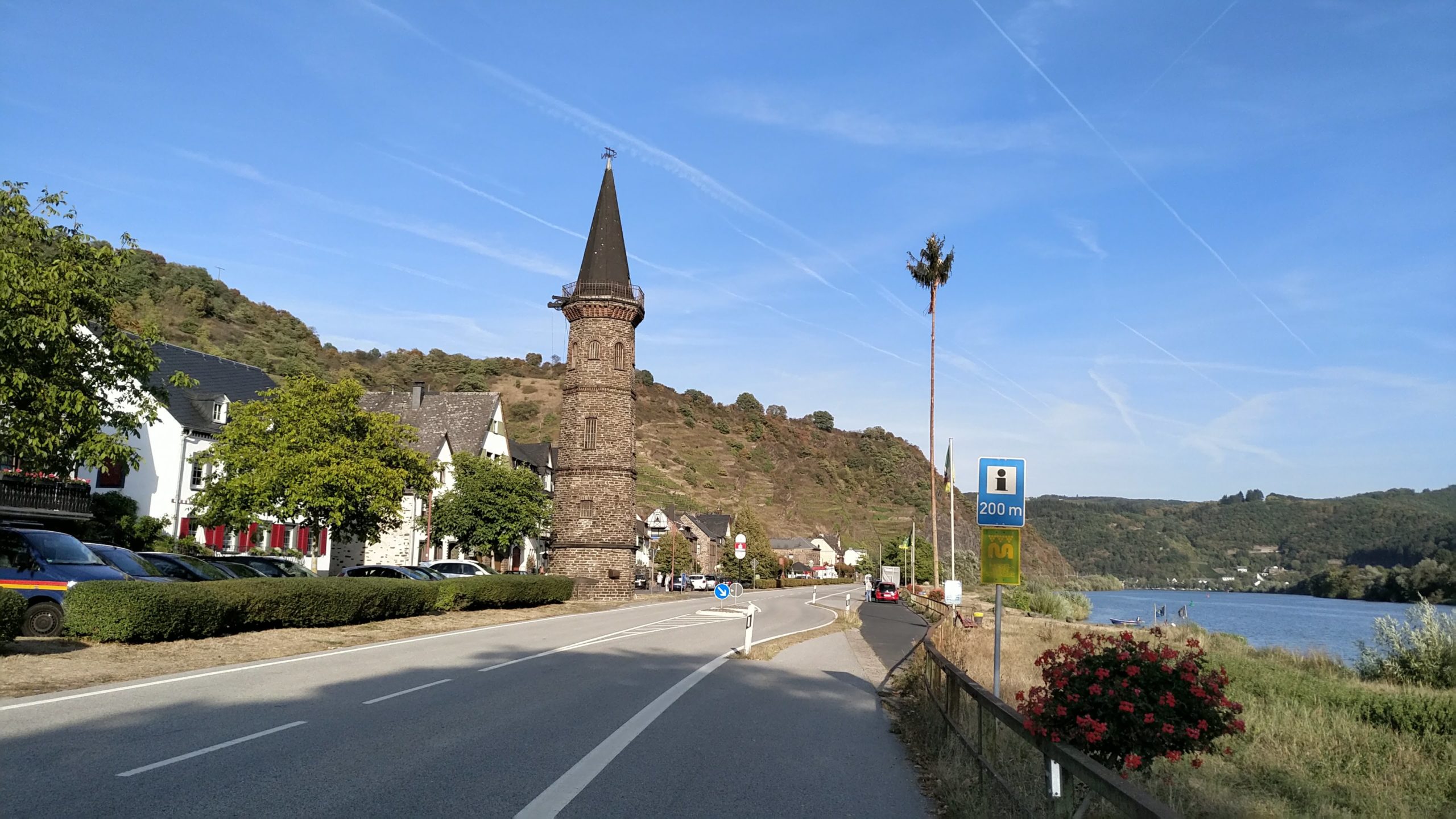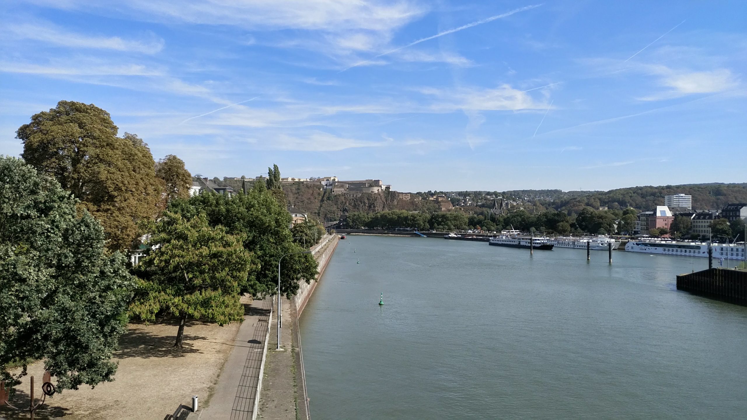 Ce matin visite de Bonn à vélo puis direction Koblenz où je vais retrouver un peu de campagne, ceci dit les rives du Rhin sont maintenant bordées de collines, d’un peu plus de verdure et on voit déjà quelques vignobles, c’est plus beau qu’hier, par contre il fait de plus en plus chaud. Je fais des haltes nombreuses pour boire et me refroidir, j’arrive à trouver quelques plages pour me baigner.