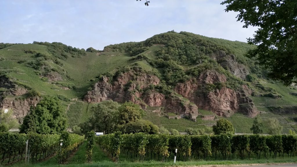 La Moselle que je remonte continue ses méandres entre les collines verdoyantes, c’est vraiment très beau … et reposant. Le temps reste correct, il fait moins chaud mais le vent s’engouffre dans la vallée et bien sûr je ne suis pas dans le bon sens, une bonne averse me fera de nouveau tester ma cape de pluie que j’enlève aussitôt à cause du vent, la pluie est chaude … je suis trempé. Les bateaux de croisière se succèdent et font des haltes dans les villes à visiter. Il y a toujours des fêtes des vendanges dans les villages.