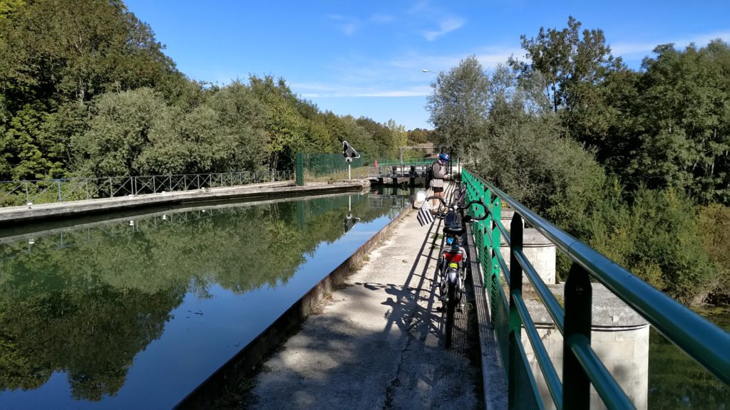 Dernière étape de mon périple, il fait super beau et la région est très belle jusqu’à Châlons-en-Champagne, ensuite grandes étendues de culture intensive ! Le halage du canal est très mal aménagé, ce qui nous oblige à prendre plutôt la route qui longe plus ou moins le canal, d’autant plus que Christian a pris son vélo de route donc… Passage par le village de Bouy d’où est parti, en octobre 1908 le 1er vol de ville à ville d’ Henri FARMAN avec un avion biplan Voisin, c’est aussi à Bouy qu’est né Henri GUILLAUMET, pilote sur les lignes « Latécoère » avec MERMOZ et SAINT-EXUPERY. Arrivée dans la famille, les nièces et leurs petits sont au rendez-vous pour nous accueillir. C’est fini … pour cette fois !